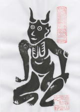角大師護符 角大師、比叡山中興の祖、慈惠大師良源・(正月三日が命日なので元三大師ともいう)が、疫病に苦しめられたのを機に民衆を病魔から救う誓願を立て、自ら鬼形になった相を絵にあらわし、魔除けの護符としたといわれます。 このお札を戸口に貼り付けるようにすれば邪魔が近づかず、疫病はもとより一切の厄災が入るのを防ぐといわれる。500円 |