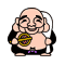 布袋和尚は、中国の唐代末五代の頃に実在したお坊さんです。名前は契此(かいし)といい、定応大師、長汀子などとも称されます。その特徴は、なんといっても怪しく奇異なお姿にあります。額が広く大きく、腹の肥えた容貌をしていました。 そして、『景徳傳燈録』第二十七によると、常に杖を持ち、また日用品の全てを入れた大きな袋を担って町中を歩き、喜捨を求めたり、占いをしていたようです。この特徴から布袋和尚とあだ名され、太鼓腹と大きな袋と杖が目印となっています。 また、布袋和尚は「彌勒眞彌勒、分身千百億、時時示時人、時人自不識」という偈文を残しました。これは、自ら彌勒佛の生まれ変わりであると名乗ったことであり、ここから布袋和尚が彌勒佛の化身であるとする伝説が生れました。縁日は五日です |